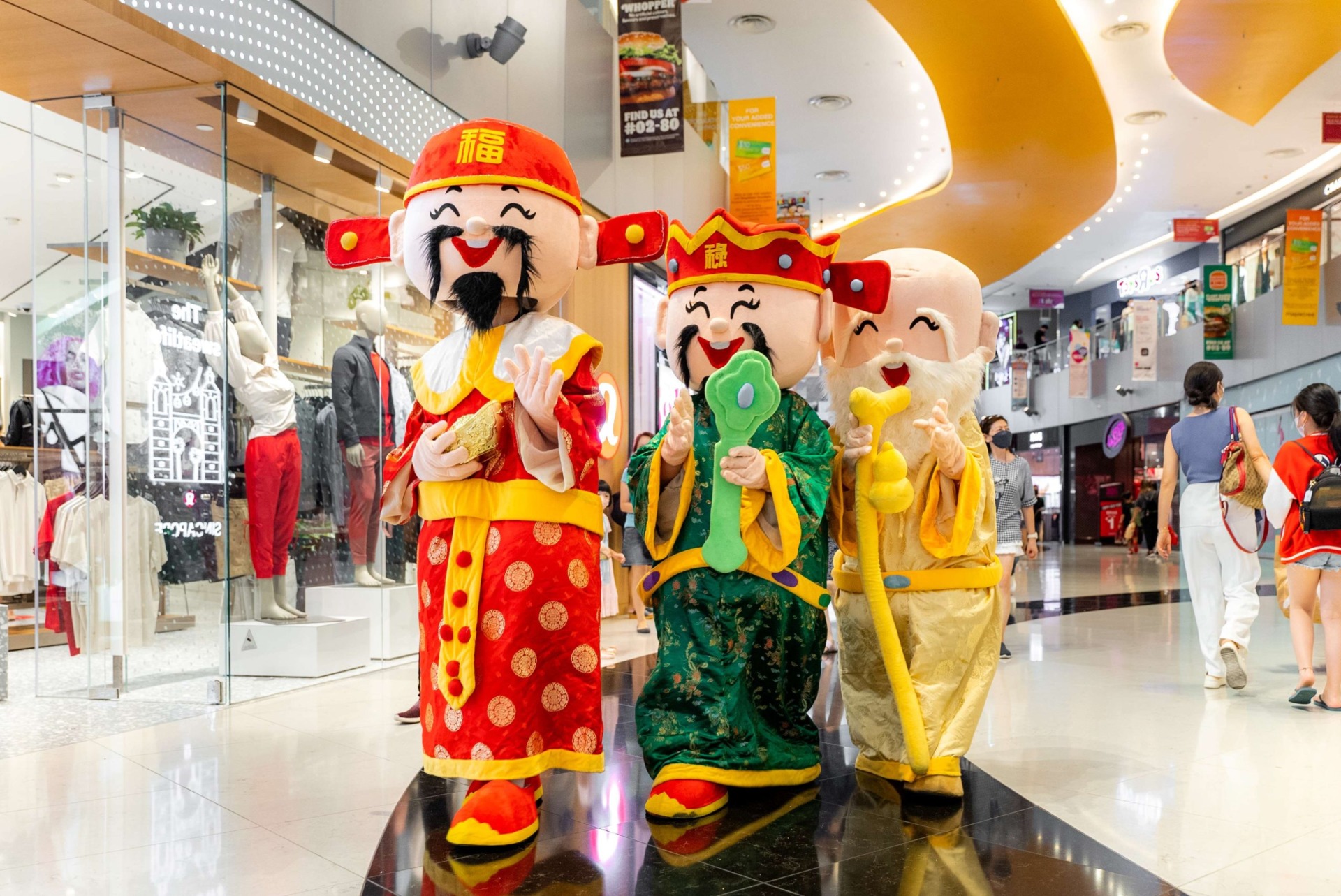 Spot God of Fortune and Fu Lu Shou as they share their blessings and good fortune for the coming year!